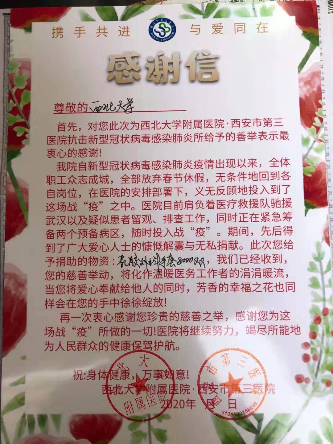 急难关头显党性,关键时刻有担当。战“疫”打响后,pp电子平台官网入口副院长陈凯同志,秉承西大医学人“医人报国、精诚济世”的使命责任,带头参加到疫情防控工作当中,发挥共产党员的先锋模范作用。疫情暴发以来,他积极与学校附属医院沟通联系、了解所急所需,在得知一线医护物资紧张的情况后,及时向学校汇报,协调专款支援疫情防控一线。在疫情防控的关键时期,他与国内处、财务处等同志积极调动各方资源,及时跟进货源渠道情况,在“上海正和岛爱心企业家”校友联盟、澳洲校友总会、罗马尼亚陕西商会、陕西省归国华侨联合会等组织的协助支援下,累计采购捐赠口罩20845个,医用防护手套8000双,防护面罩600个、类人胶原蛋白修复敷料176盒,在一定程度上缓解了疫情一线防控物资紧缺之急。他的默默付出,彰显出了共产党员的初心与使命。