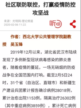 疫情发生后,公共管理学院院长、党委副书记(兼)雷晓康同志积极带头,以强烈的责任感和使命感主动承担社会责任参与疫情防控,作为民政部政策理论研究基地合作单位主任,第一时间发动党员干部、专家学者,发挥自身优势、专业特长,围绕疫情防控、社会治理等方面的重点难点问题进行深入研究,收集相关专家观点,汇集民政系统应对策略,积极为疫情防控的智库建诤言献良策,为完善疫情防控工作举措提供智力支持。目前已经汇编“疫情简报特刊”四期、西大公管《智库政策建议》三期,吴玉锋同志“社区联防联控,打赢疫情防控攻坚战”的建议被光明网理论频道转载;陕西新闻网“陕西头条”刊发雷晓康同志政策建议:构建社会力量参与疫情防控引导机制。《智库政策建议》已经通过西安市决策咨询委上报市委市政府。学院党员干部继续带头,积极参与到疫情防控斗争中,助力打赢疫情防控战。