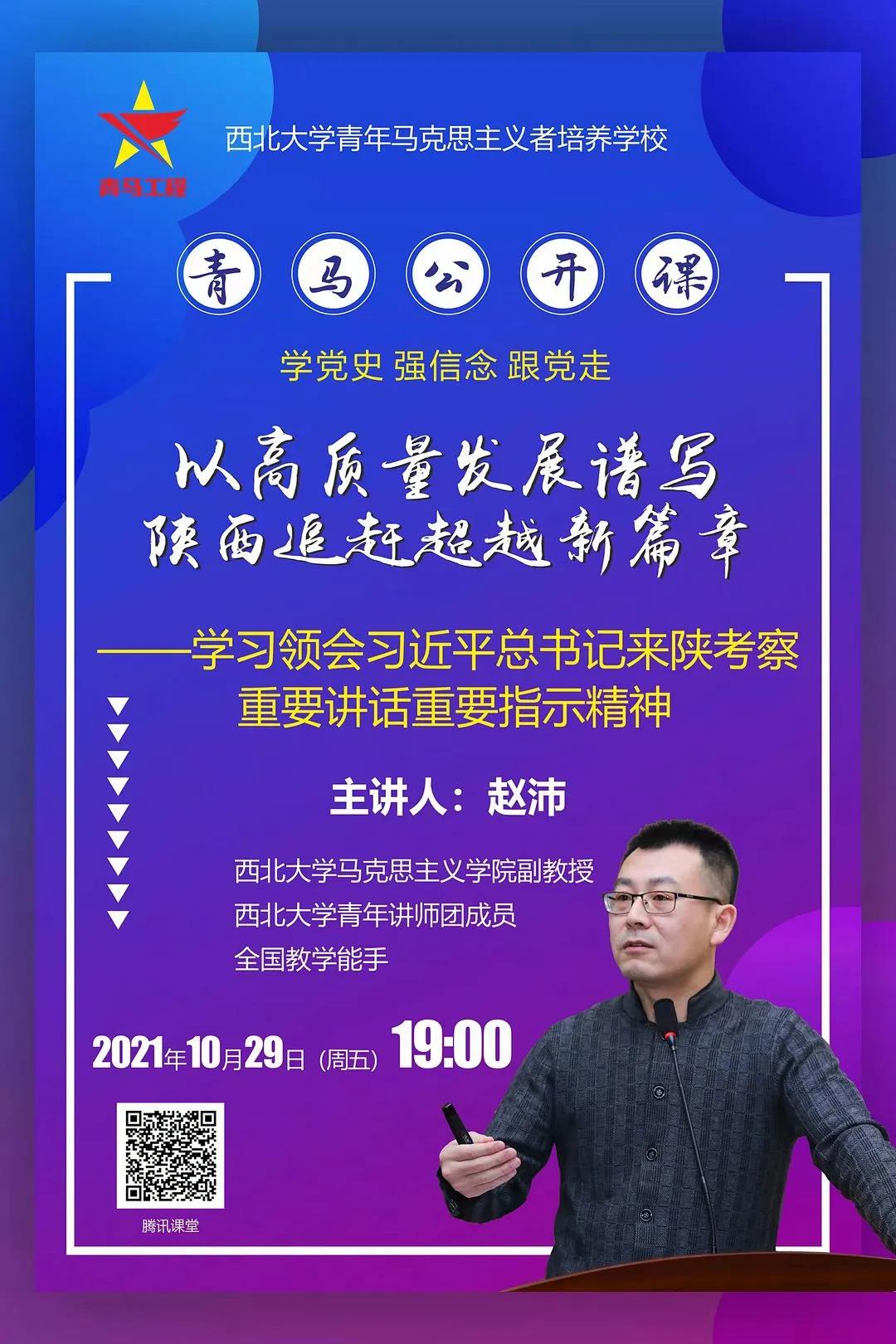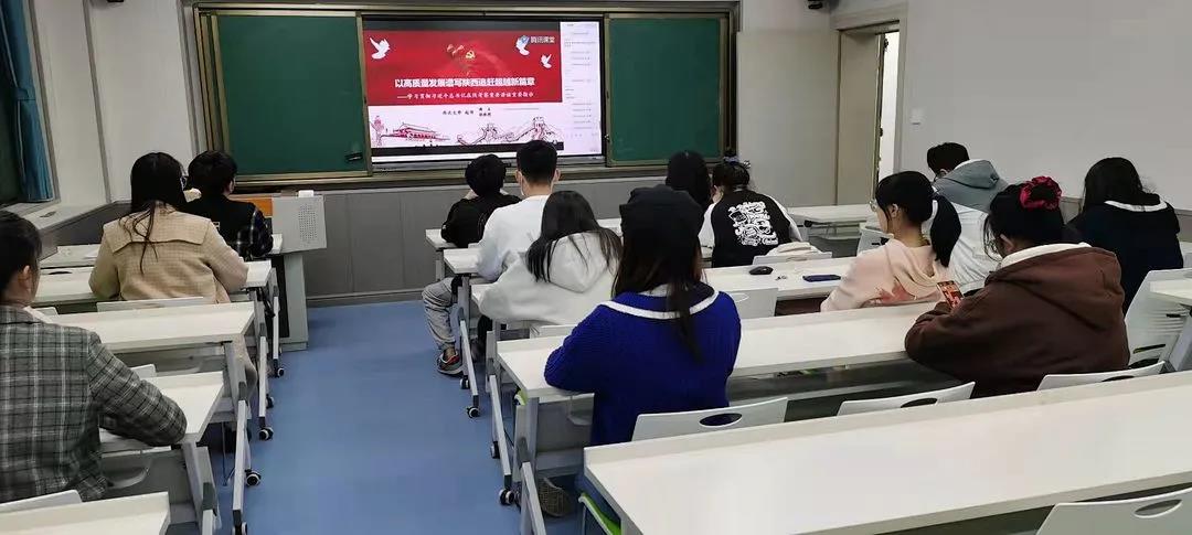 为学习好、宣传好、贯彻好习近平总书记来陕考察重要讲话精神,不断营造学讲话、感党恩、勇作为的浓厚氛围,pp电子平台官网入口团学组织开展习近平总书记来陕考察重要讲话精神主题学习会,集体观看了由PP电子游戏平台网站马克思主义学院副教授、PP电子游戏平台网站青年讲师团成员、全国教学能手赵沛副教授讲授的以《以高质量发展谱写陕西追赶超越新篇章》为题的线上讲座。