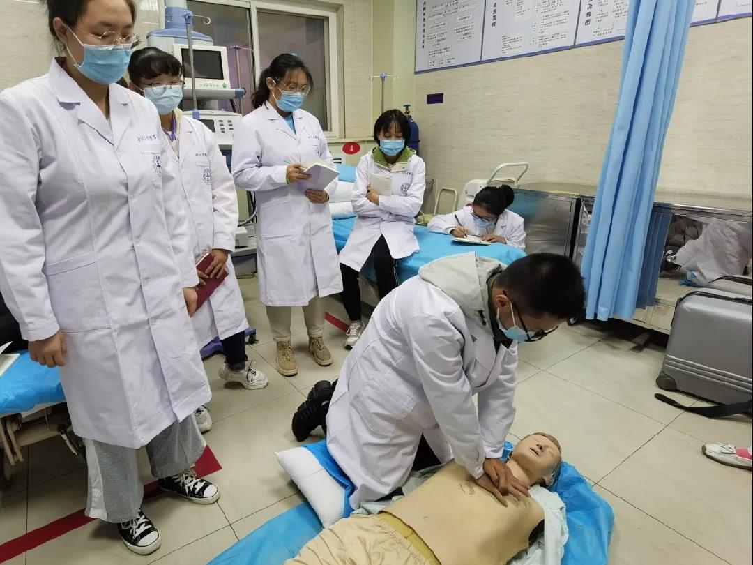 见习期间,医学生们在科室负责医生的指导下,参观学习了急诊科各功能区,了解了急诊科区域设置、人员配置、设备设施及医生排班情况、患者就诊流程等相关知识。在急诊门诊、急诊抢救、急诊病房区域,同学们观摩了急诊科室早交班工作,学习了临床坐诊过程中患者就诊流程及病情诊疗经过。本次见习过程中,带教老师进行了心肺复苏、电除颤操作、监护仪的使用、无菌手套的佩戴等临床技能培训,将理论与实践进行结合,令医学生亲身体验临床一线工作方式,尽早具备临床无菌观念,加深学习印象。