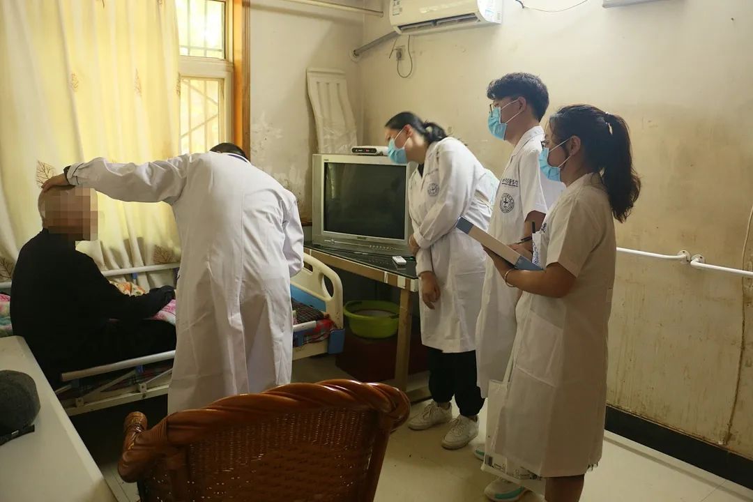 本次医诊过程也是一次对医学生的临床带教实习。两位医师结合专业学习与同学们认真讨论、分享临床经验,介绍疾病诊断及护理注意事项。两位医师对病人体贴细致的关怀,赢得了患者与家属的尊敬。同学们表示,本次医诊活动让他们对医者仁心有更真切的感悟。