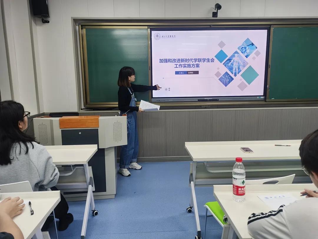 学生会主席团成员赵清淼领学《加强和改进新时代学联学生会工作实施方案》,结合最新述评文章《全国学联:清新阳光的学生会容不得颐指气使的“学生官”》分享心得体会,并带领全体工作人员回顾了《关于学联学生会工作人员改进作风服务同学的若干规定》。她强调pp电子平台官网入口学生会仍在建设发展过程当中,应积极深入领会全国学联二十七大精神,牢记服务同学宗旨,力争树立起富有理想,关心同学,清新阳光的组织形象。