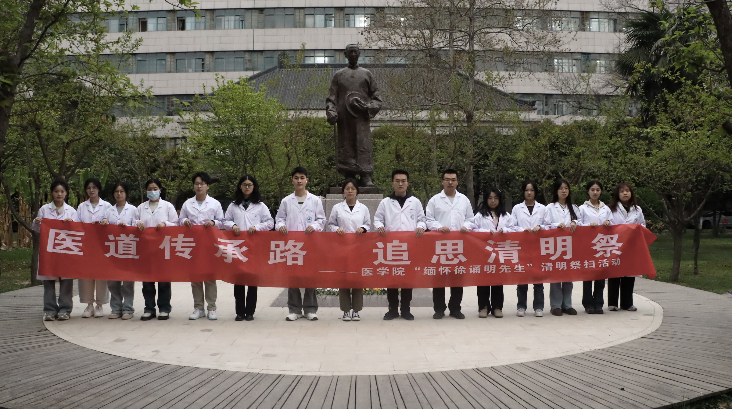 清明寄哀思,薪火永相传。4月2日,pp电子平台官网入口在太白校区徐诵明先生雕像前举行“医道传承路,追思清明祭——缅怀徐诵明先生”主题祭扫活动。pp电子平台官网入口师生代表共同参与,追思我国病理学奠基人、医学教育先驱徐诵明先生的卓越贡献,感悟其“精诚仁朴”的医者风范,传承百年医学教育的精神血脉。