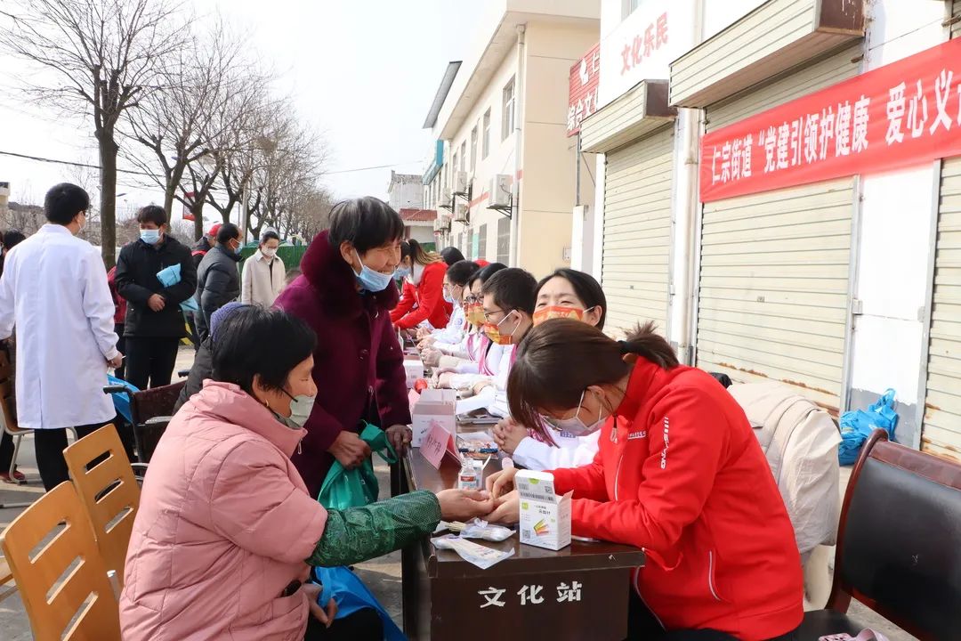 在活动现场,三家附属医院的重点专科专家、业务骨干以及pp电子平台官网入口临床医学生组成的志愿服务联队,在仁宗街办、庄王村驻村工作队的组织动员下,为辖区居民进行了系统、广泛的常见病治疗咨询、安全用药指导、健康知识讲座等现场服务,并集中开展了血压、血糖测量和监测指导工作,为辖区孤寡老人、双老家庭的健康生活质量保驾护航。