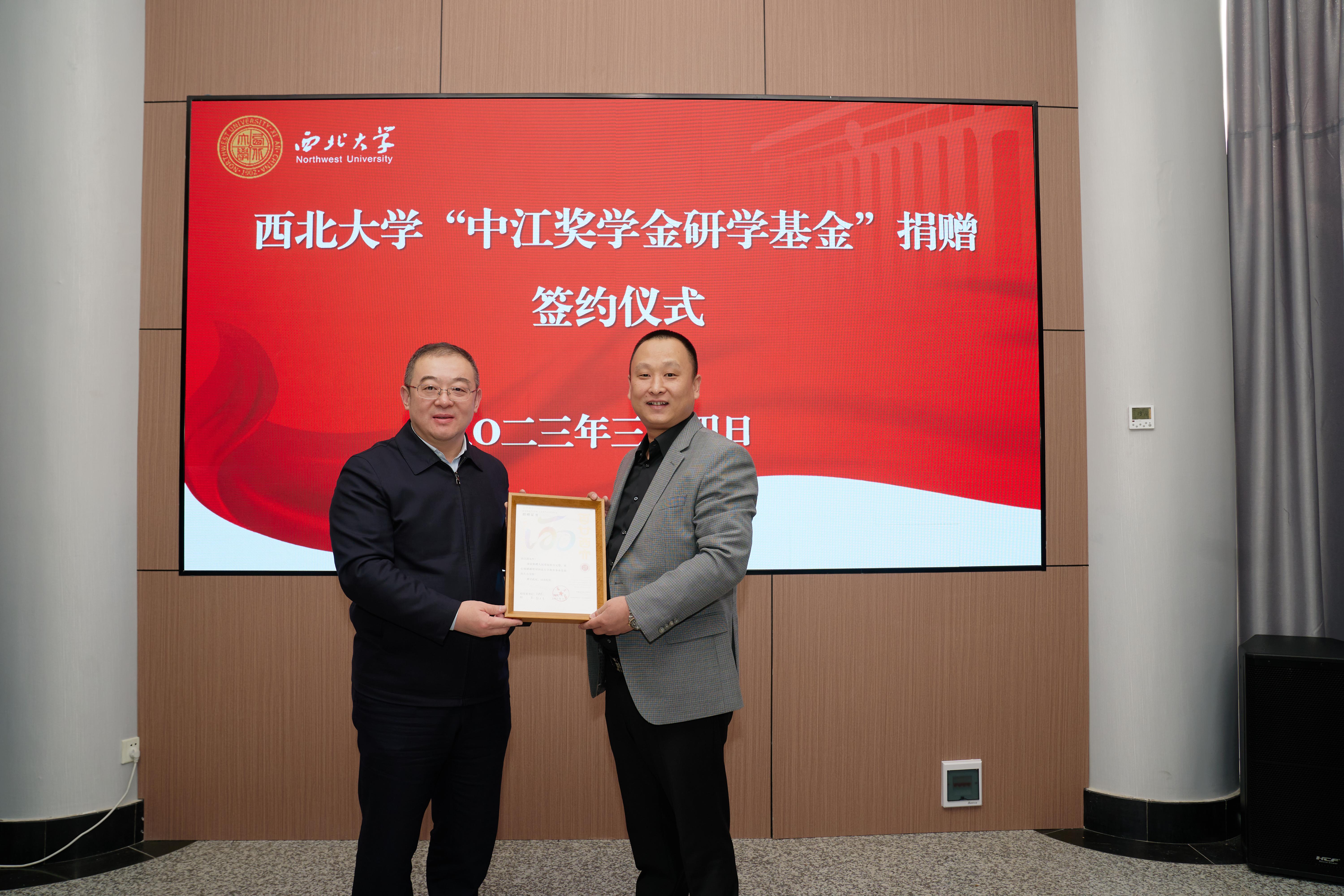 2023年3月4日上午,PP电子游戏平台网站“中江奖学金研学基金”签约捐赠仪式在太白校区举行。校党委常委、副校长常江,北京爱心企业家冉江涛、梁翠丹,校友郝重庆出席仪式,国内合作与校友工作处、学生工作部、研究生院、生命科学与医学部、碳中和学院负责人参加。