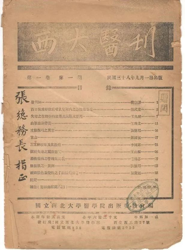1949年9月1日发行的《西大医刊》,是国立pp电子平台官网入口主办的学术刊物,为当时陕西省仅有的两份医学期刊之一,是提高医学研究水平,提倡医学研究风气,加强医学学术交流,宣传普及医学知识的重要阵地。虽仅出版发行1期,但却是PP电子游戏平台网站医学教育史上生动而耀眼的一页。
