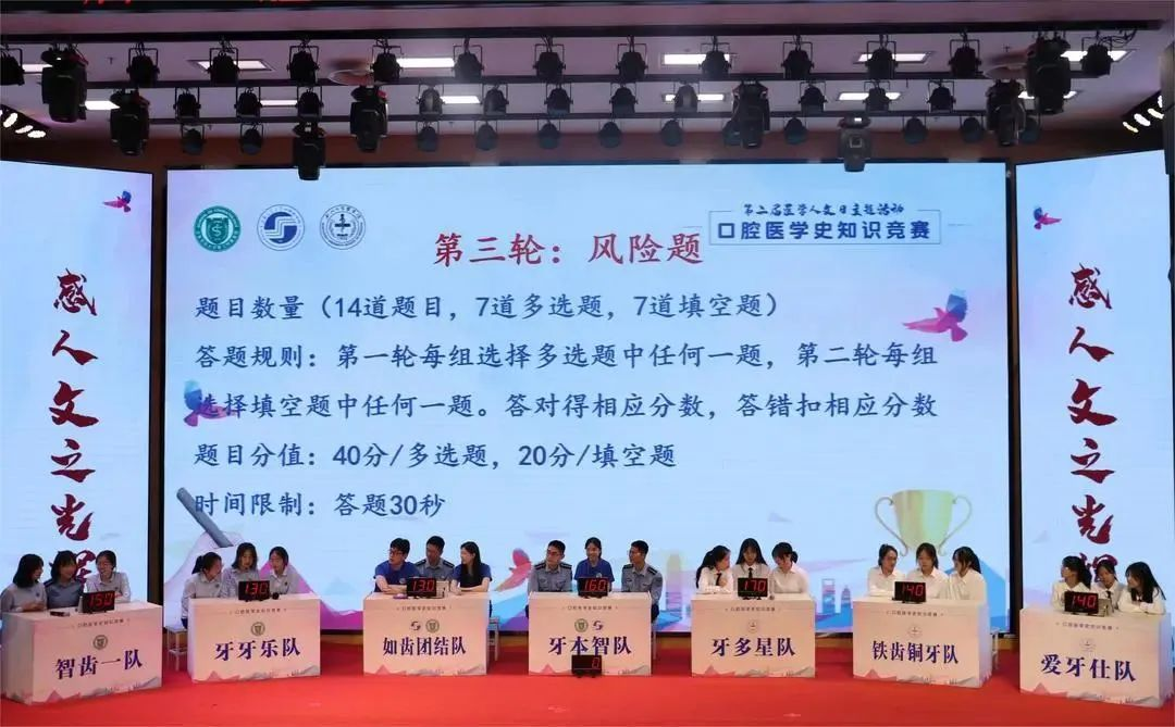 为加强学科自信、厚植优秀历史文化,加强校际交流合作,提升口腔医学生人文素养,引导口腔医学生重视并热爱口腔医学发展史的学习,提高医学生学习的积极性和主动性,pp电子平台官网受邀参加由空军军医大学主办,上海交通大学和我校共同参与的口腔医学人文日主题活动——口腔医学史知识竞赛。