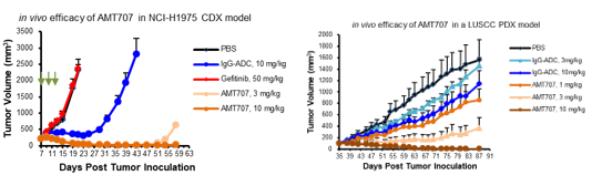 图4.特异识别CD44v9的抗体AMT707在药物偶联后具有良好的肿瘤生长抑制作用