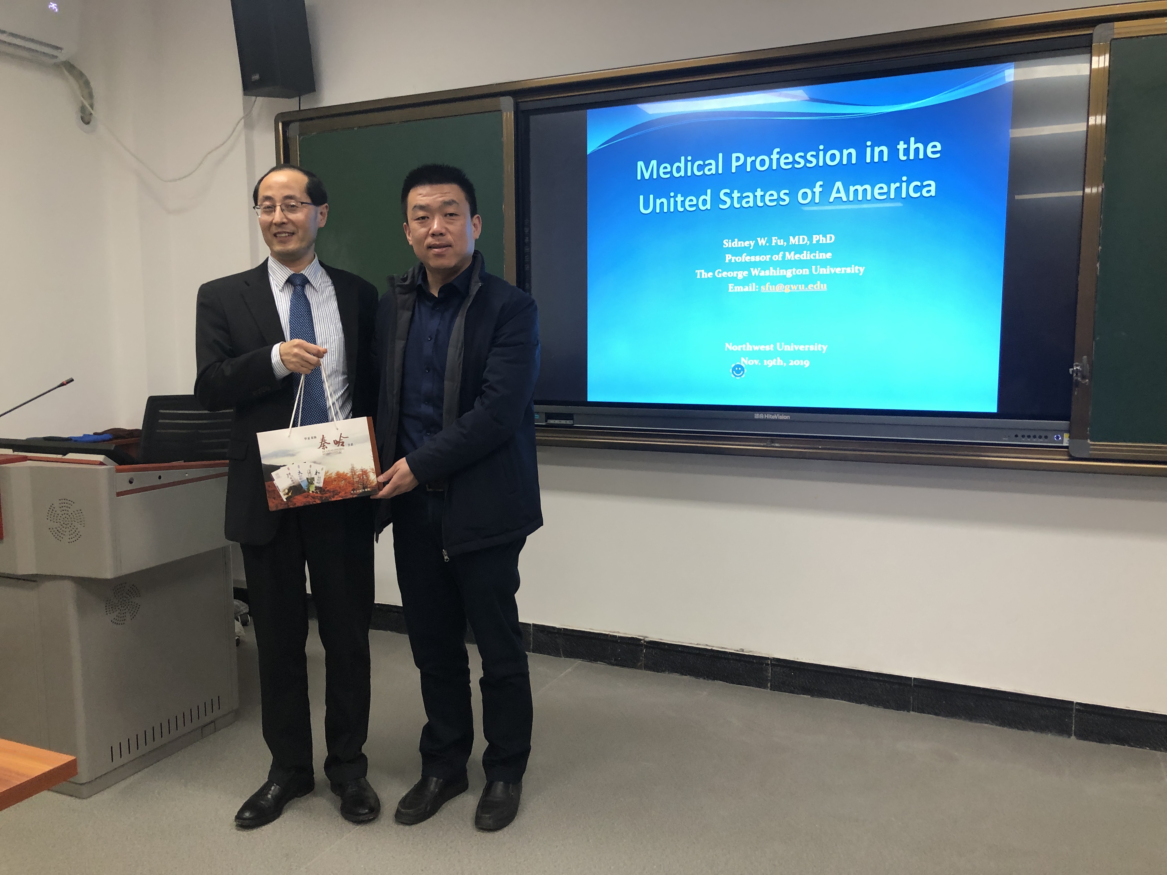 11月19日,美国乔治华盛顿大学医学与健康科学学院教授Sidney W. Fu博士,受邀在我校pp电子平台官网入口多媒体教室做了题为“Medical Profession in the United States of America”的报告。pp电子平台官网入口党政班子成员、2019级临床医学专业同学以及部分教师代表聆听了报告。报告由生命科学与医学部崔亚丽教授主持。