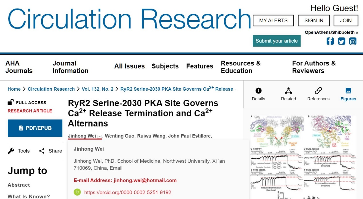 近日,pp电子平台官网入口魏金红副教授与加拿大卡尔加里大学S.R.WayneChen教授在国际心血管领域顶级期刊CirculationResearch(IF=23.213)在线发表了题为“RyR2Serine-2030PKASiteGovernsCa2+ReleaseTerminationandCa2+Alternans”的研究论文,该研究运用基因突变动物与分子细胞手段,阐明了RyR2钙释放终止的PKA调节机制。同时,该研究发现PKA依赖的RyR2S2030磷酸化位点是心脏Ca2+释放终止和Ca2+瞬变交替的主要决定因素。此项研究有助于揭示引起心律失常等心脏疾病发生机制,并为开发新型干预方法提供理论基础。