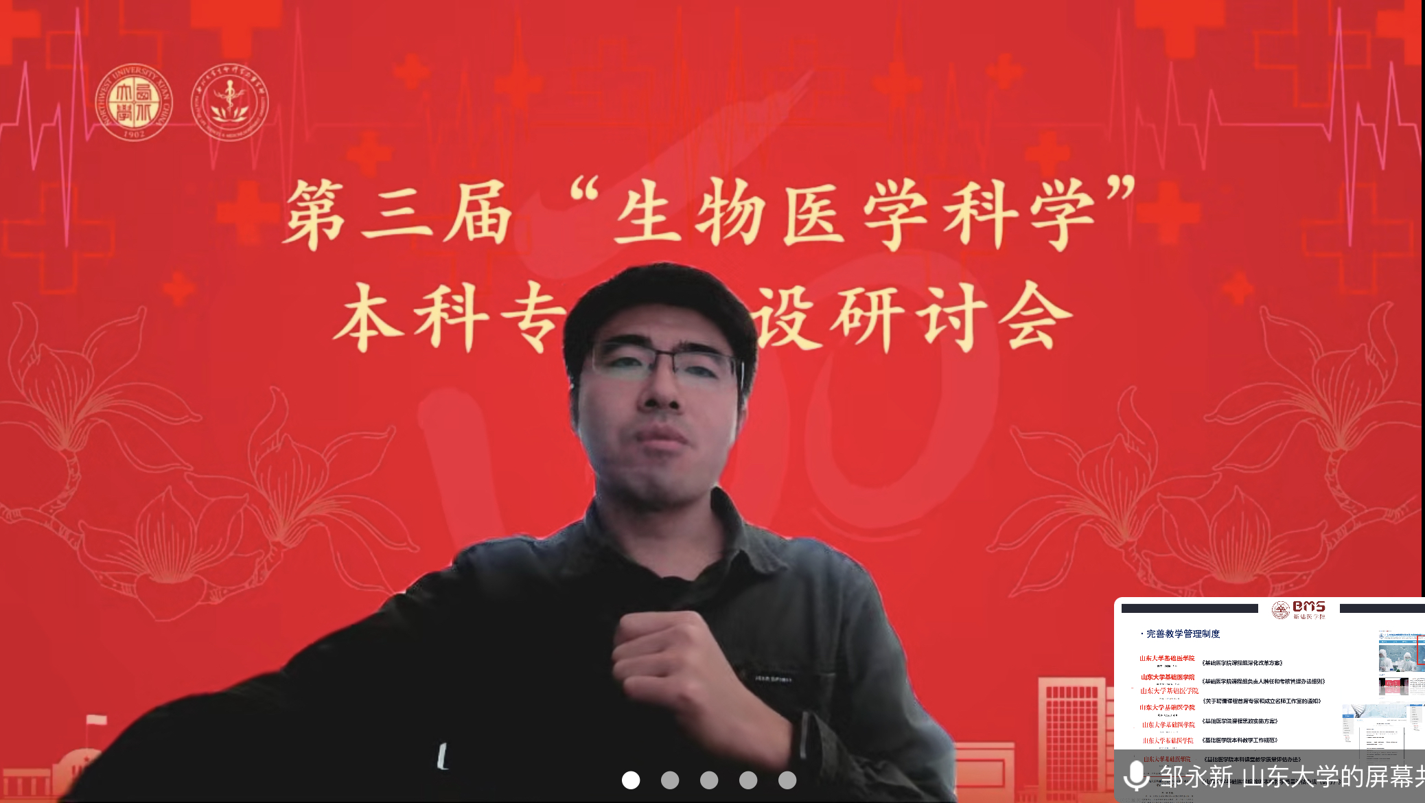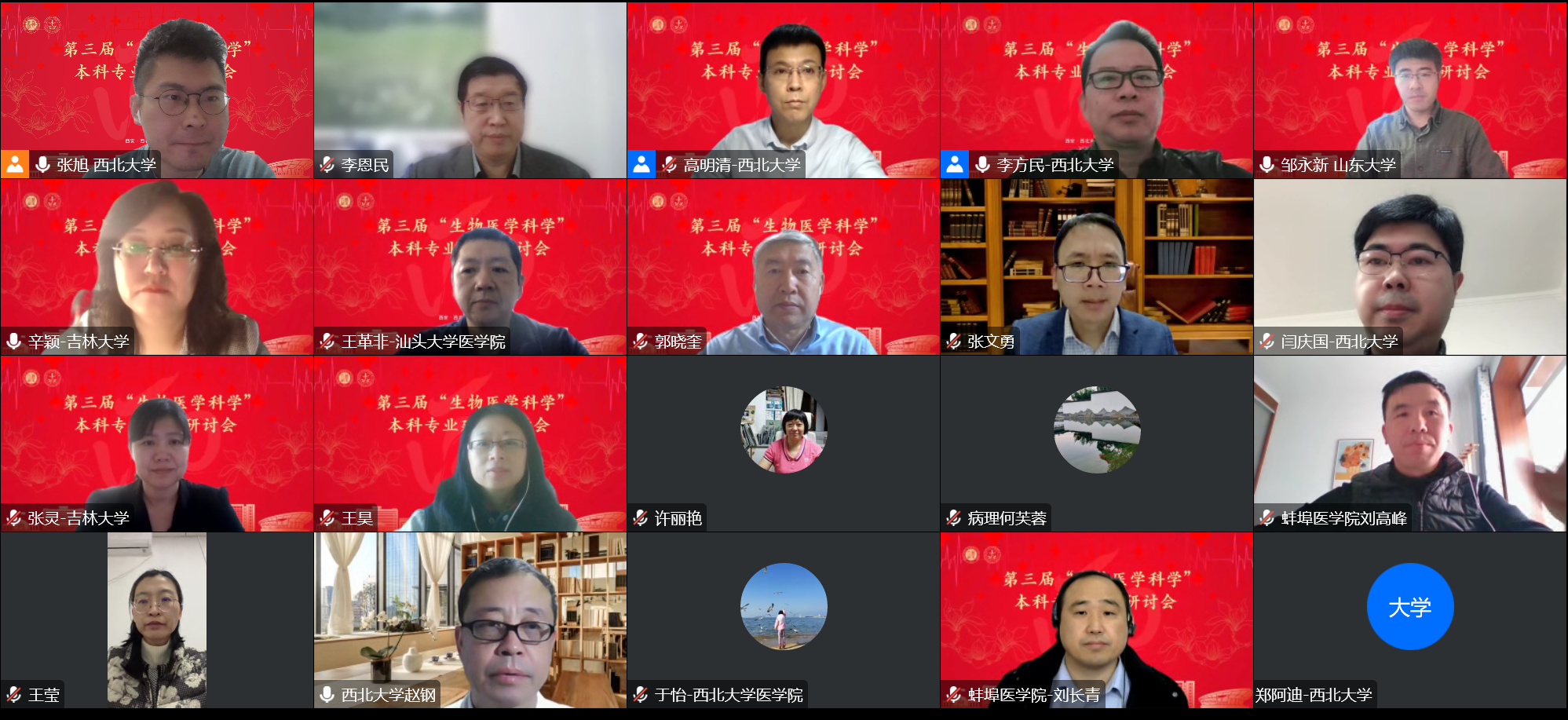 2022年12月11日,由全国生物医学科学专业虚拟教研室主办、pp电子平台官网入口承办的第三届“生物医学科学”本科专业建设研讨会成功举办。由于受疫情的影响,本次研讨会采用线上会议、全程直播的方式举行。来自上海交通大学、汕头大学、南方科技大学、山东大学、吉林大学、蚌埠pp电子平台官网入口、PP电子游戏平台网站等学校的专家,围绕大会议题进行了深入的交流和探讨。开幕式由pp电子平台官网入口李方民副院长主持,赵钢院长致欢迎辞。汇报和交流环节由王昊教授、李恩民教授、高明清教授联合主持。