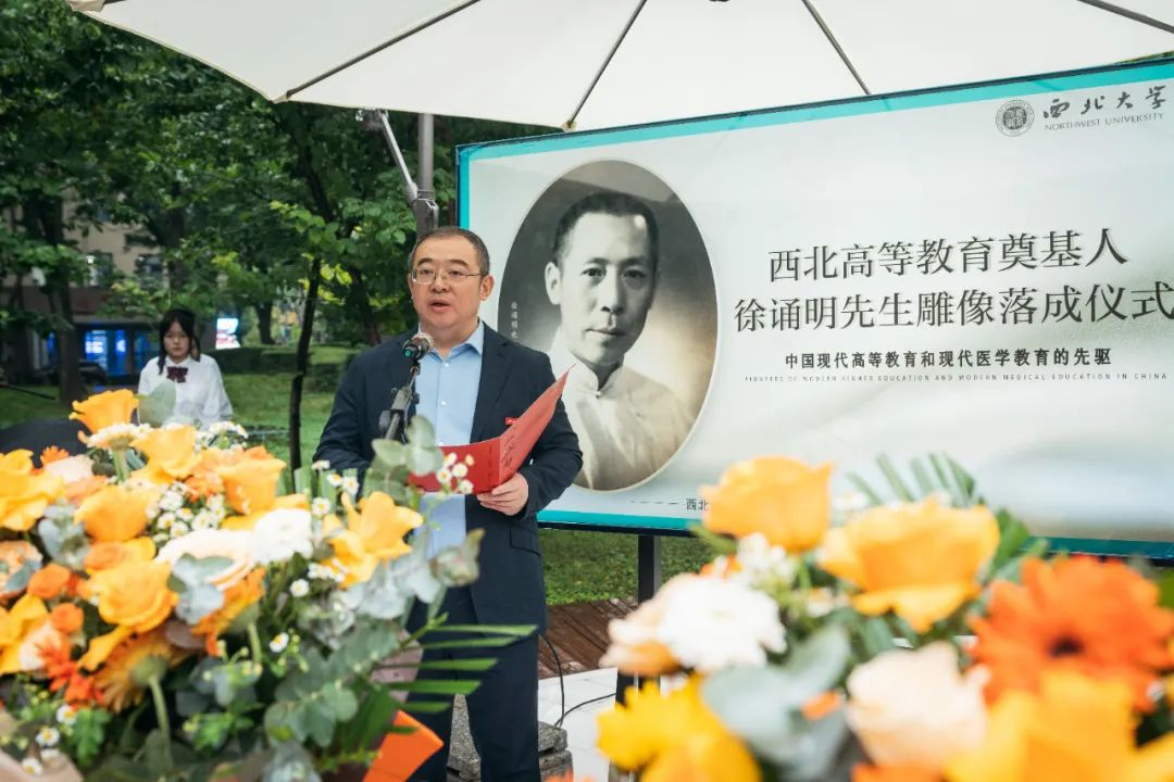 北京大学医学部副主任肖渊代表北京大学医学部向雕像落成表示祝贺,并表示徐诵明先生作为连接北平大学、国立PP电子游戏平台网站等西北国立五所学校的关键联系纽带,意义重大。北京大学医学部与PP电子游戏平台网站医学学科同源同根,医脉相传,将共同努力,一道推进医学教育的高质量发展
