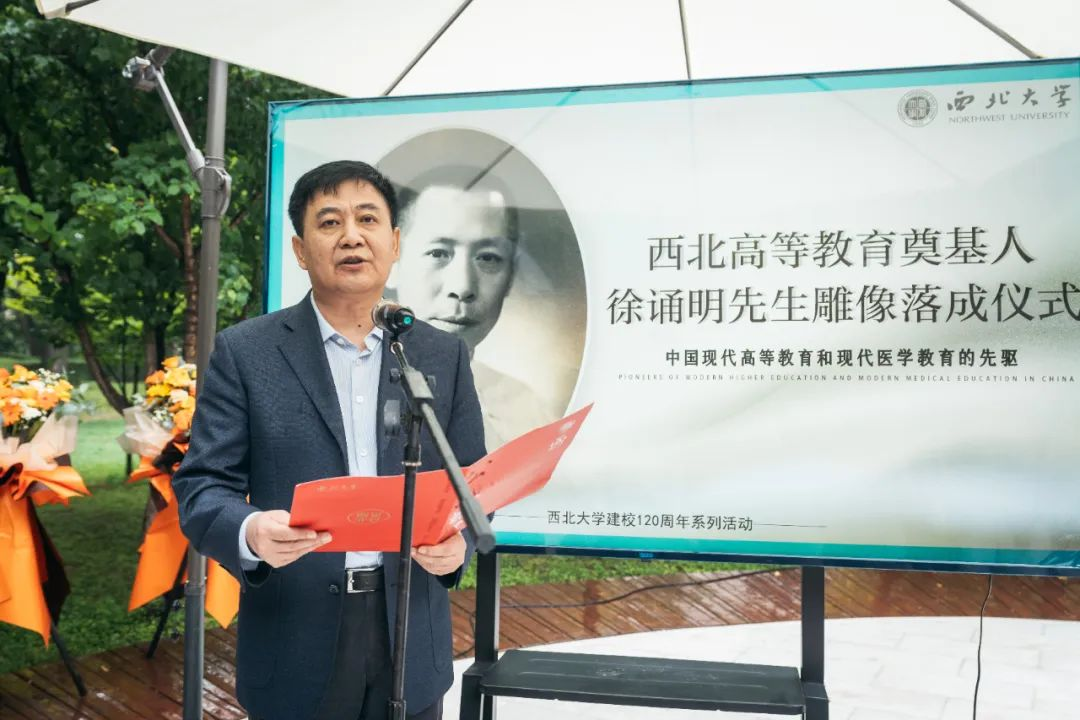PP电子游戏平台网站党委书记王亚杰,徐诵明先生外孙、国家一级美术师徐冬冬,西安交通大学党委常委、医学部党委书记陈腾、PP电子游戏平台网站附属第一医院副院长邵景、浙江省新昌县委常委、统战部部长严岚,陕西省汉中市城固县委常委、宣传部部长田海燕共同为“徐诵明先生雕像”揭幕。仪式由校党委常委、副校长常江主持。