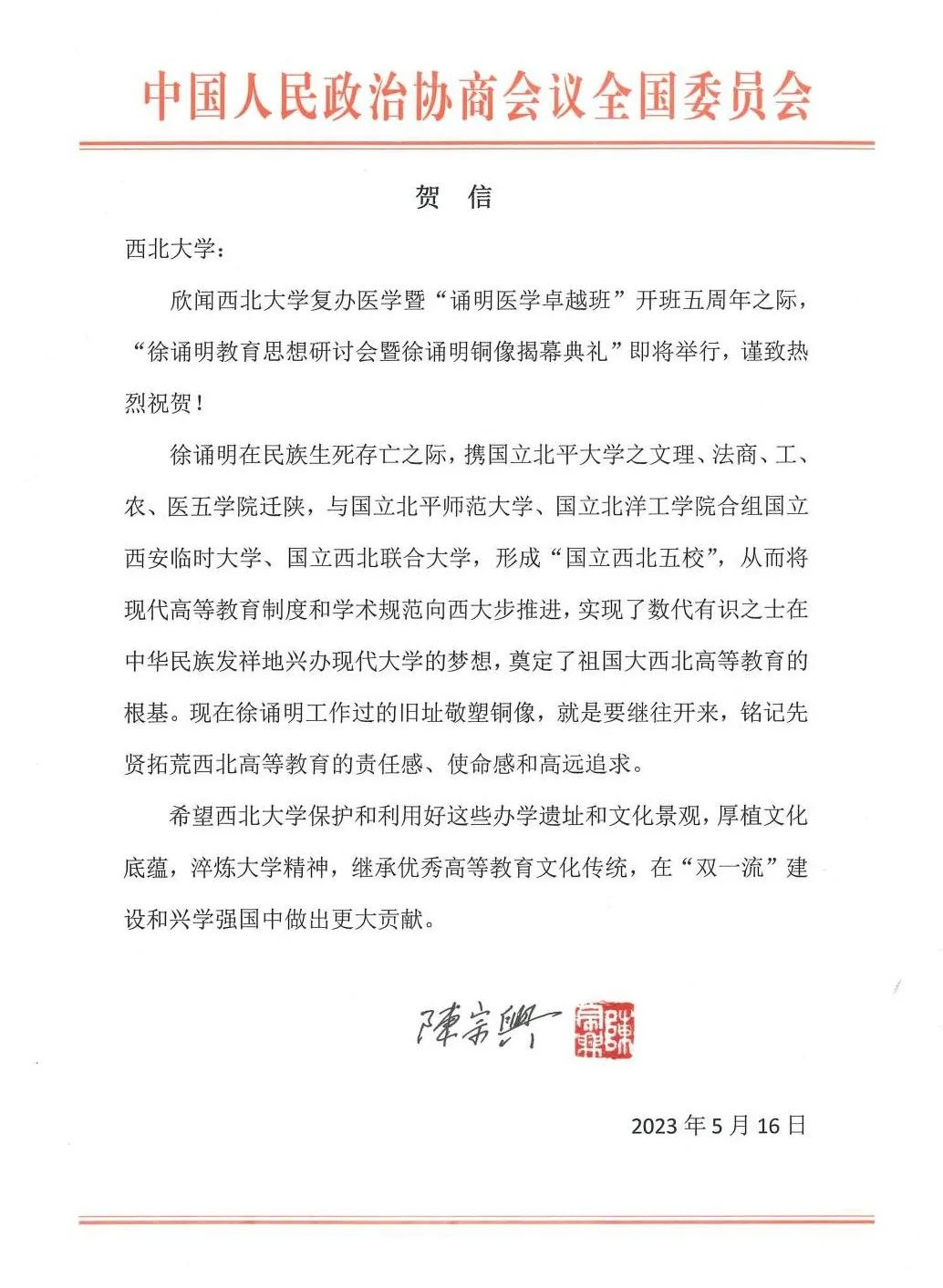 5月26日上午,PP电子游戏平台网站举办“徐诵明教育思想学术研讨会暨徐诵明雕像落成仪式”。中国病理学的开创者、中国现代高等教育和现代医学的先驱、西北高等教育奠基人徐诵明全身雕像在PP电子游戏平台网站太白校区落成。该塑像由十四届全国政协副秘书长、中国美术馆馆长吴为山教授设计创作。