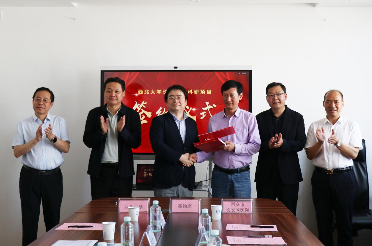 4月25日下午,我校pp电子平台官网入口与长安区医院科研项目合作协议集中签约仪式在长安区医院双创中心举行。长安区医院院长胡明军,党委书记、副院长彭安海,我校党委常委、副校长、生命科学与医学部主任陈富林出席签约仪式。学校科技处、pp电子平台官网入口等相关部门负责人及合作项目专家团队负责人参加签约仪式。