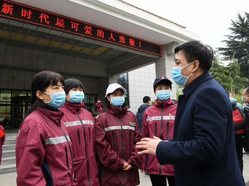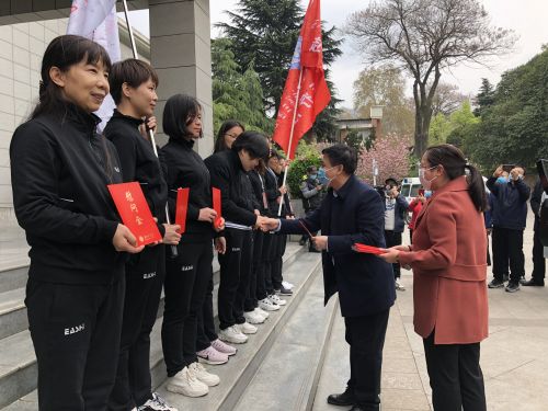 4月3日下午,校党委党委书记王亚杰,校党委常委、副校长常江一行赴陕西省工人疗养院,在学校两所附属医院的9名援鄂医疗队员休整结束的第一时间,为她们举行了凯旋欢迎会。