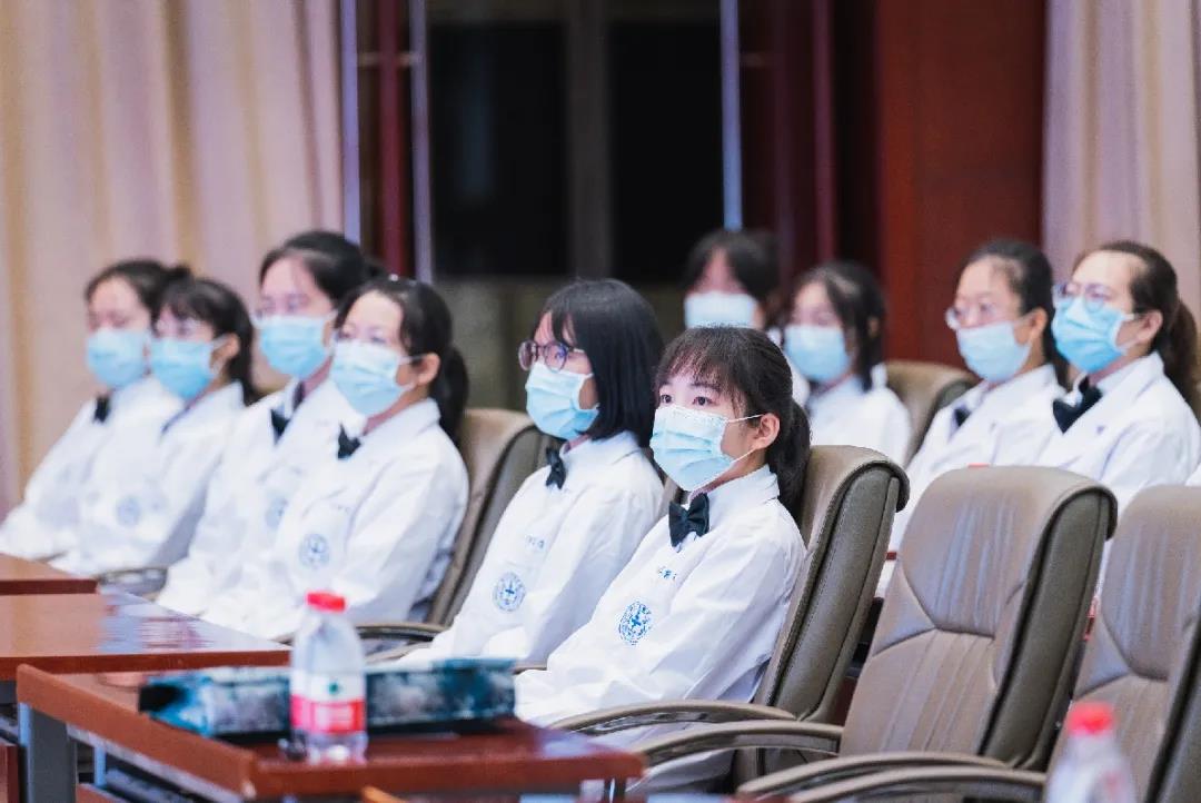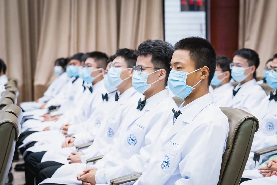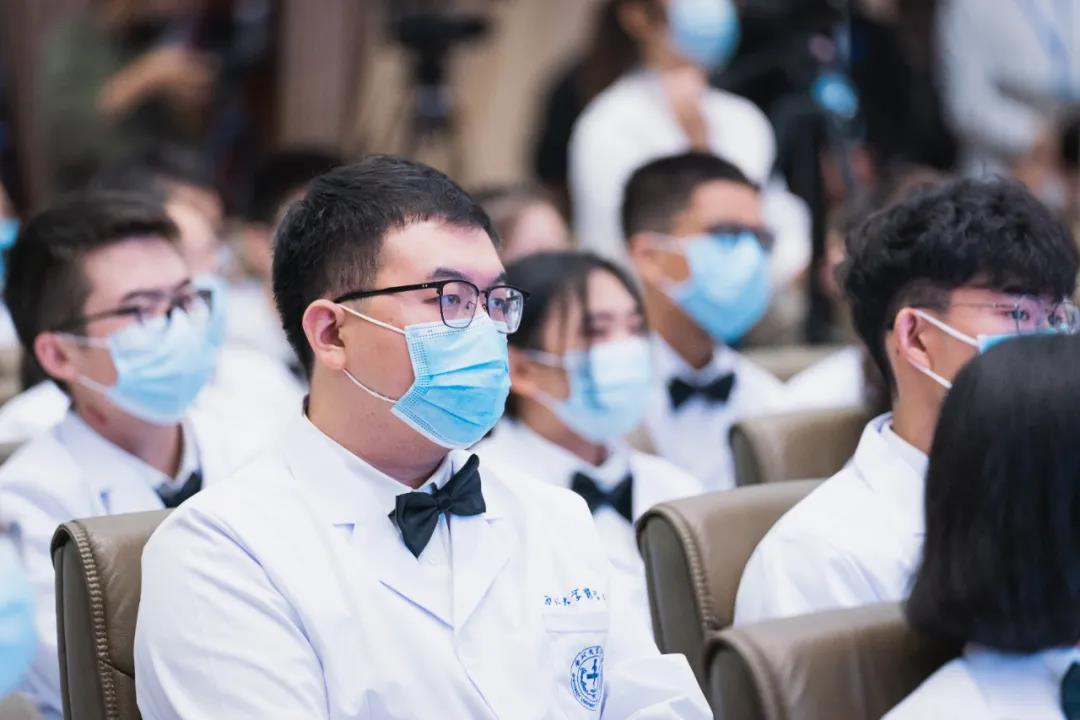 赵铱民为医学新生授予医学白袍,用满满仪式感激励新生在医学道路上砥砺前行。