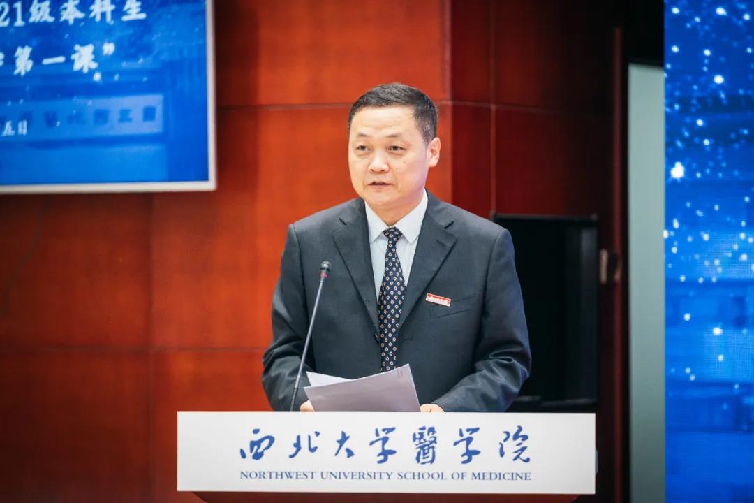 原第四军医大学校长赵铱民,中国医学科学院北京协和pp电子平台官网入口党委书记姚建红,陕西省人民政府副秘书长张军林,陕西省卫健委副主任杨联昌,西安市卫健委主任刘顺智,解放军总医院原副院长郭明华,空军军医大学唐都医院原院长张永生,西安交通大学医学部原副主任王子明,陕西省政府办公厅综合六处干部史远,陕西省卫健委科教宣传处处长薛寒,西安市卫健委科教处处长程婕,陕西江林集团董事长王占林,陕西省人民医院、西北妇女儿童医院、西安市第四医院、西安市中心医院、西安市红会医院相关负责人,PP电子游戏平台网站党委书记王亚杰,校长郭立宏,校党委常委、副校长常江、奚家米,pp电子平台官网入口、附属医院、附属第一医院、附属神木医院、附属西安国际医学中心医院、附属西安高新医院、附属铜川医院,长安医院、新长安国际妇产医院、陕西省血液病研究院相关负责人,学生家长代表,校内相关单位负责人以及pp电子平台官网入口师生代表参加活动。开学典礼由校党委常委、副校长,生命科学与医学部主任陈富林主持。