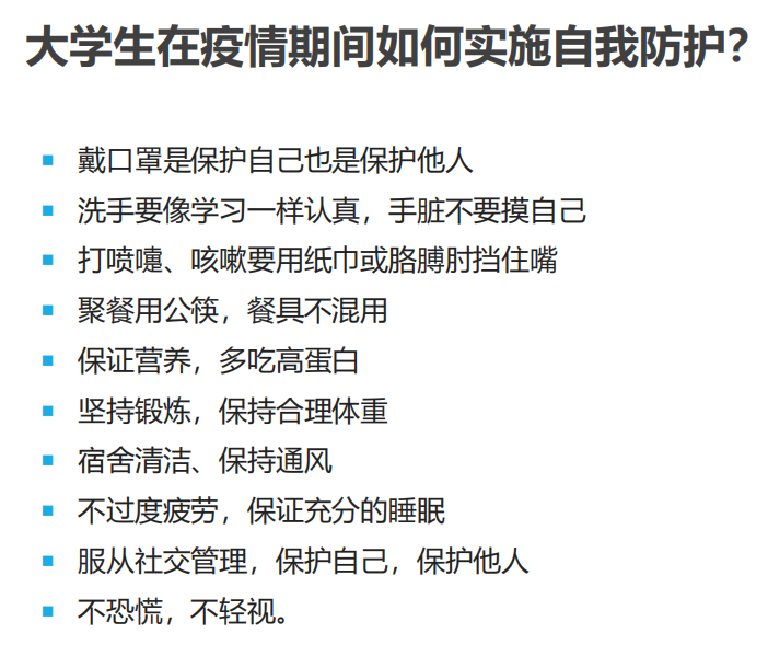 本次讲座让我对新冠有了更深层次的了解,虽然疫情让我们不得不呆在宿舍里,但是学校无时无刻的关爱,还有每天发的抗疫物资以及校园里工作人员们忙碌的身影,都让我们因在西大而自豪和感恩。疫情当前,病毒无情,战疫残酷,但是人间有爱!感谢不辞辛苦的医护人员们,感恩学校的领导们和老师们的关心,感谢志愿者们的付出,感恩党和祖国!只要我们万众一心,众志成城,相信胜利就在不远的前方!相信春暖花开后的阳光会更加明媚!