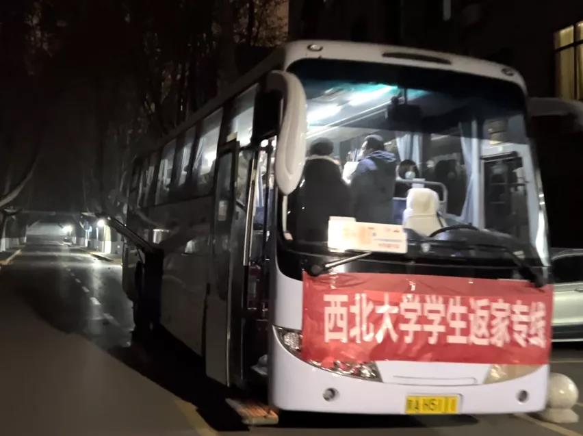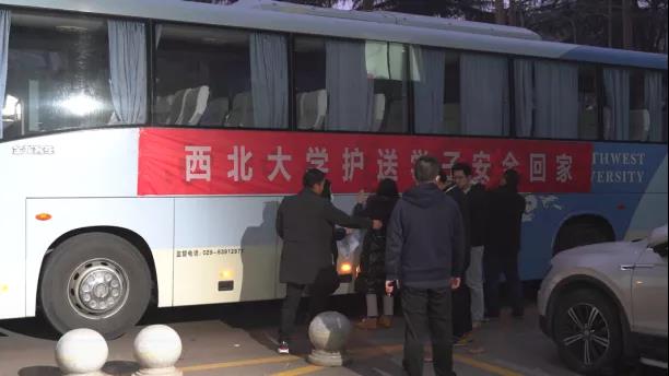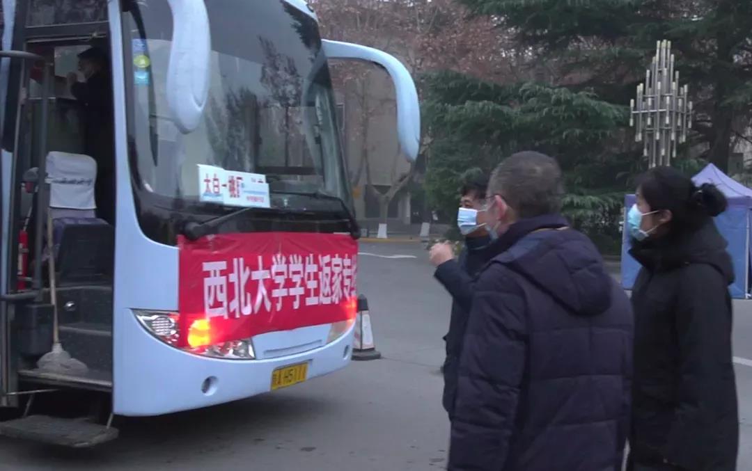 校党委书记王亚杰、副校长常江登上送站大巴,和返家学生一起前往西安北站。校党委副书记张清继续带领全体工作人员统计数据核查人数,有序组织学生排队上车,点对点运送学生直达两站一场。