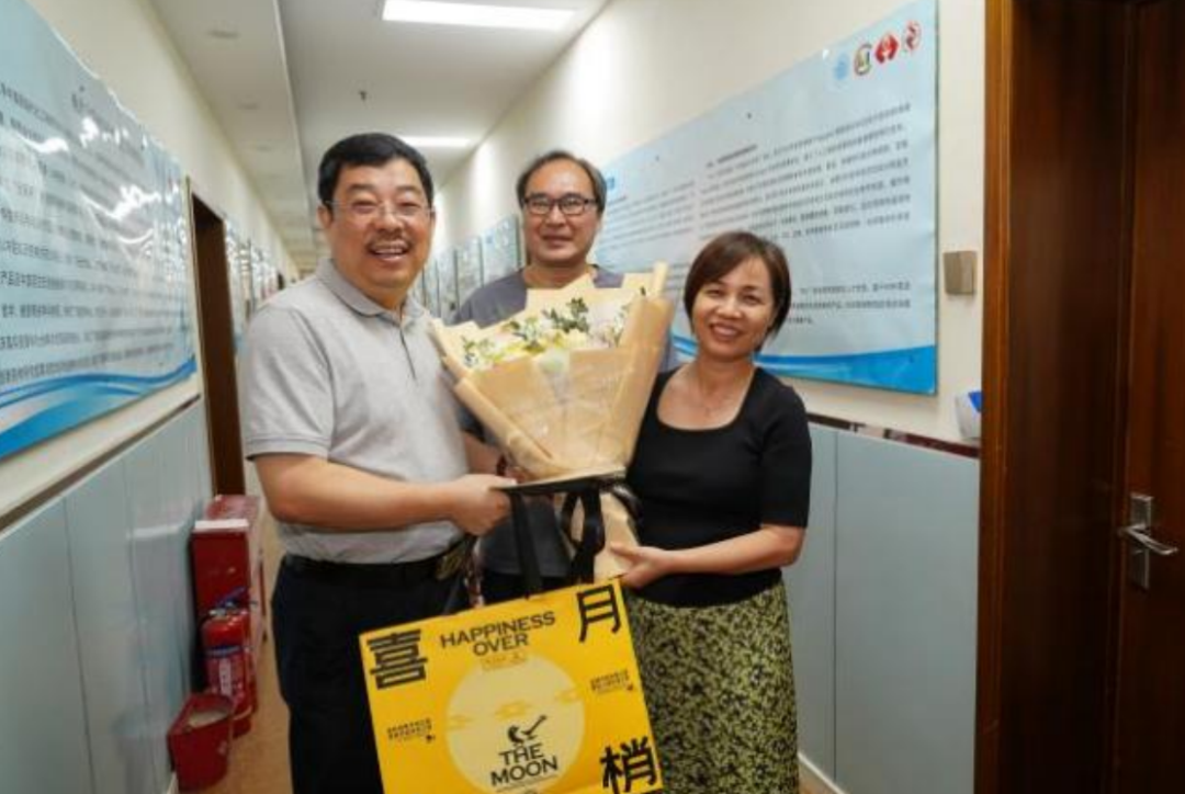 学部领导为实验科研奋战的老师们送上了节日鲜花和定制月饼,热切关心老师们的工作环境、科研进展及生活难题,祝福老师们身体健康,工作顺利。