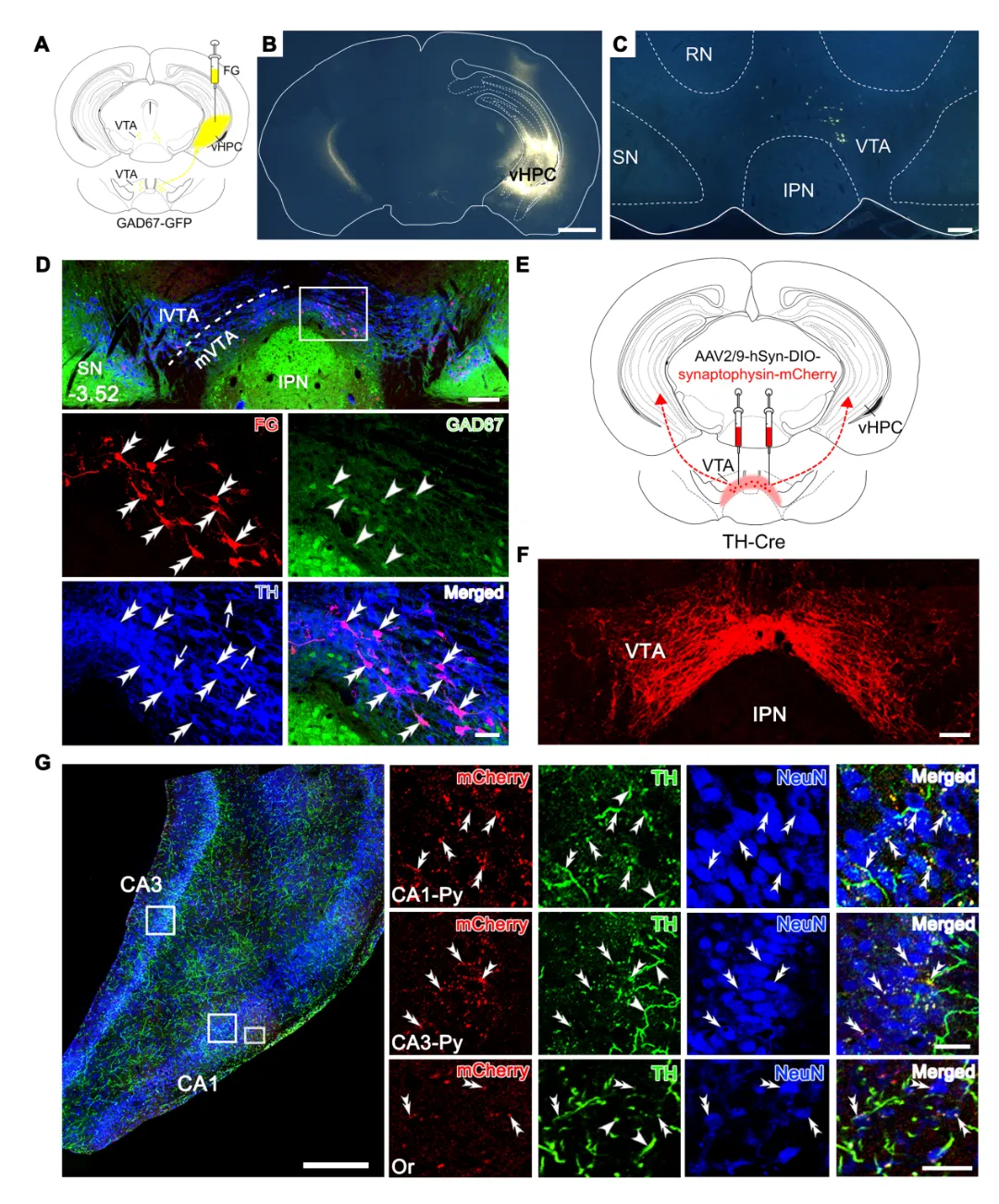 图1 VTA-vHPC神经通路解剖学特征