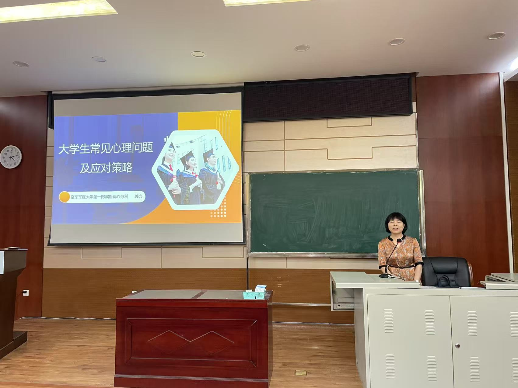 6月12日下午,空军军医大学第一附属医院心身科副主任医师、副教授郭力应邀做客我校太白校区,做《大学生常见心理问题及应对策略》专题讲座。pp电子平台官网入口党委副书记杨涛主持了讲座。